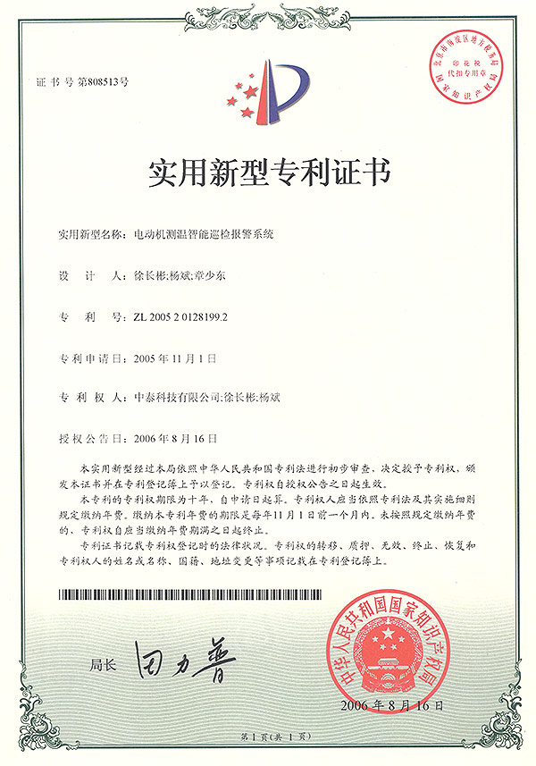 实用新型专利证书