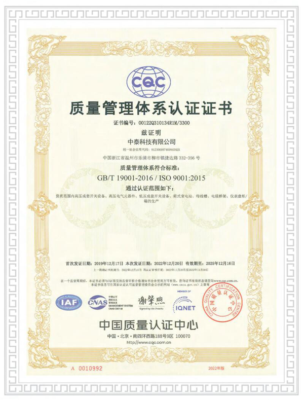 质量管理体系认证证书